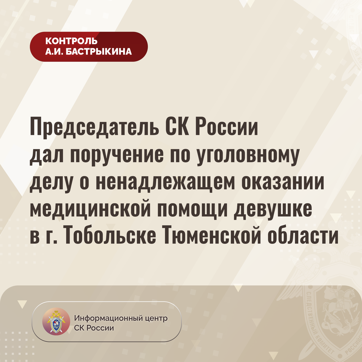 Председатель СК России дал поручение по уголовному делу о ненадлежащем оказании медицинской помощи девушке в г. Тобольске Тюменской области