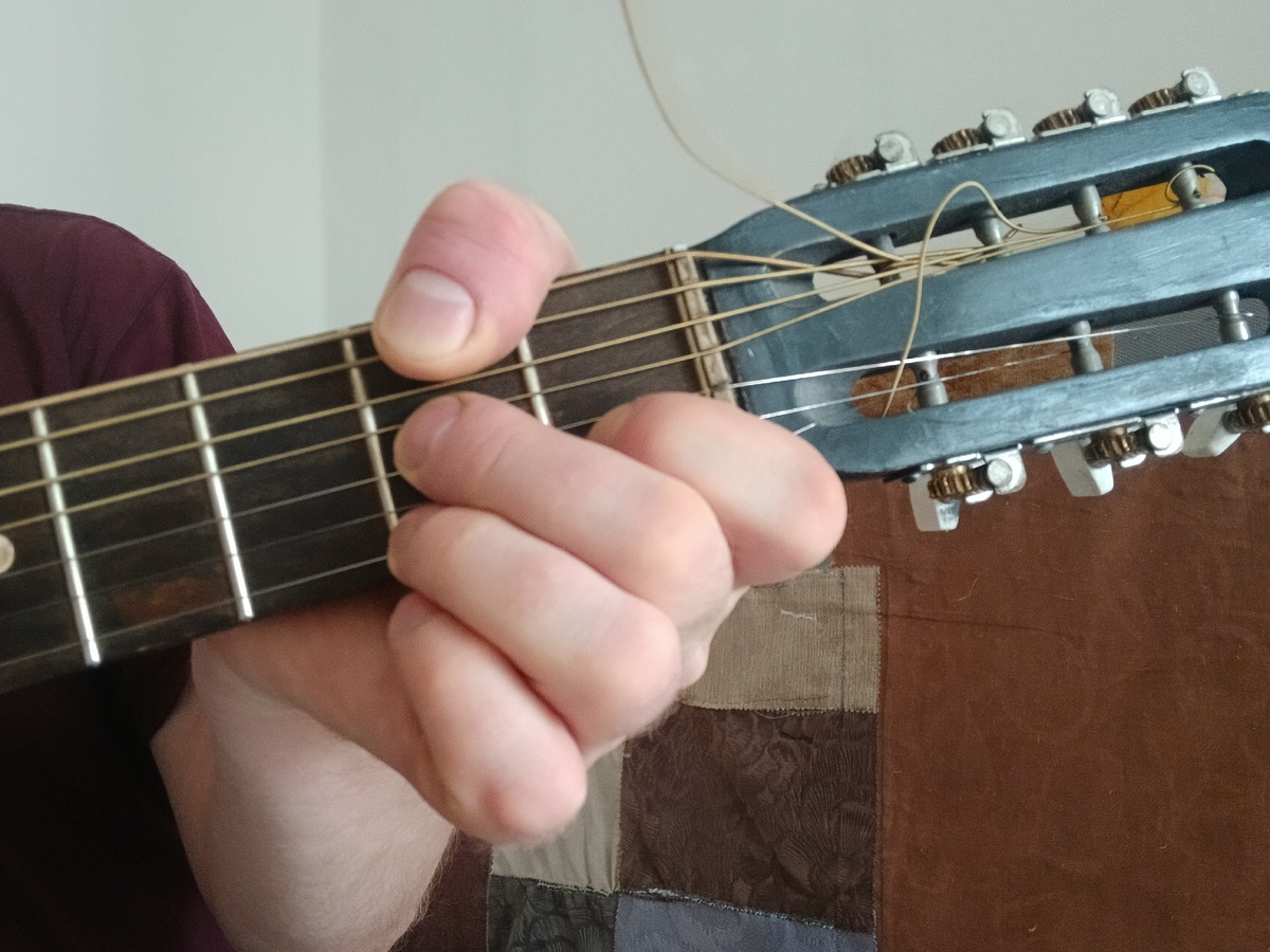 Начал новую серию публикаций, в ней покажу аккорды для семиструнной гитары. Самым простым и удобным способом. Надеюсь будет все понятно. Первый вариант зажимается на первом ладу. На фото как это делаю я, но некоторые зажимают ту же комбинацию струн, но по другому. Должно получится так; на первом ладу зажимаем 2 струну, на втором ладу зажимаем 1,3,4,6,7 струны. А вот 5 струну глушим, чтоб её не было слышно. Я это делаю большим пальцем. Если бас не играете, то 6,7 струны зажимать не надо, и 5 не задевайте или глушите. Вот ещё вариант без большого пальца, но я так не делаю, мне это сложно. Этот вариант на девятом ладу; 3 струна зажимается на девятом ладу, а 1,2,4,5 на десятом ладу. Звучит конечно выше, чем на первом ладу, и если нужен бас, то его тут нет. Пальцы удобнее всего ставить под углом, как у меня, будто играете на бас гитаре. Большой палец в игре на семиструнной гитаре участвует если играете бас. В некоторых аккордах надо зажимать одним пальцем по две струны. Надеюсь п