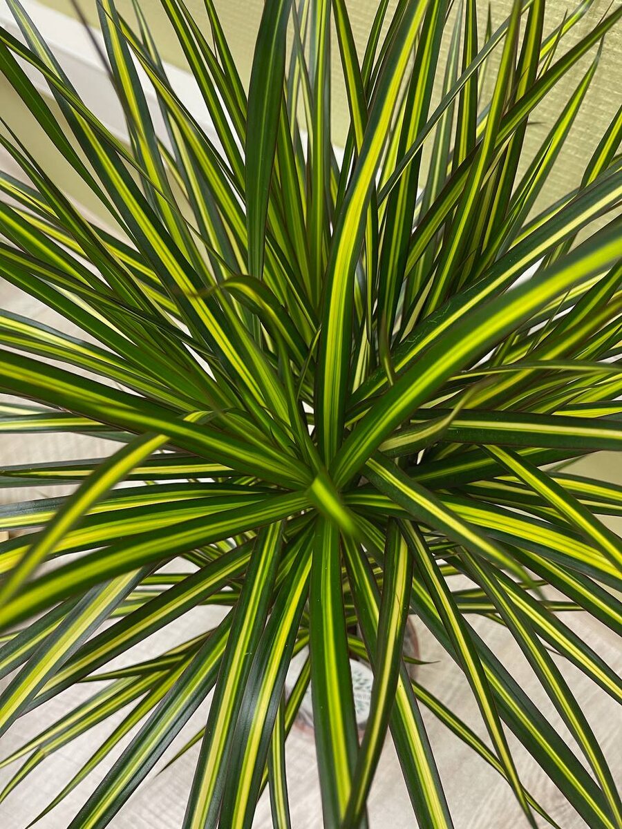 А вот если фитолампы не вписываются в бюджет, то можно завести себе драцену маргинату. На фото драцена сан рей - название переводится как луч солнца. У нас именно такой нет, есть обычная маргината, если кому-то интересно - пишите @ksushandiya. Достойные экземпляры взрослых драцен по приемлемой цене мы видели в ГБУ Измайлово, можете посмотреть на ВИДЕО.