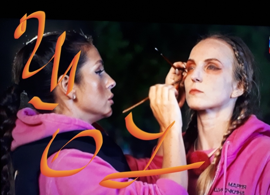 Конечно, грубовато получилось. Но их макияж приняли. А вот Синих никак не принимали. Лина уже плакала, краска ей почему-то предавала боль, щипала. Но тут немного виноват и жених Юра, он слишком много краски нанёс ей на лицо. Маг начал ржать, потому что Лина стала на панду похожа.