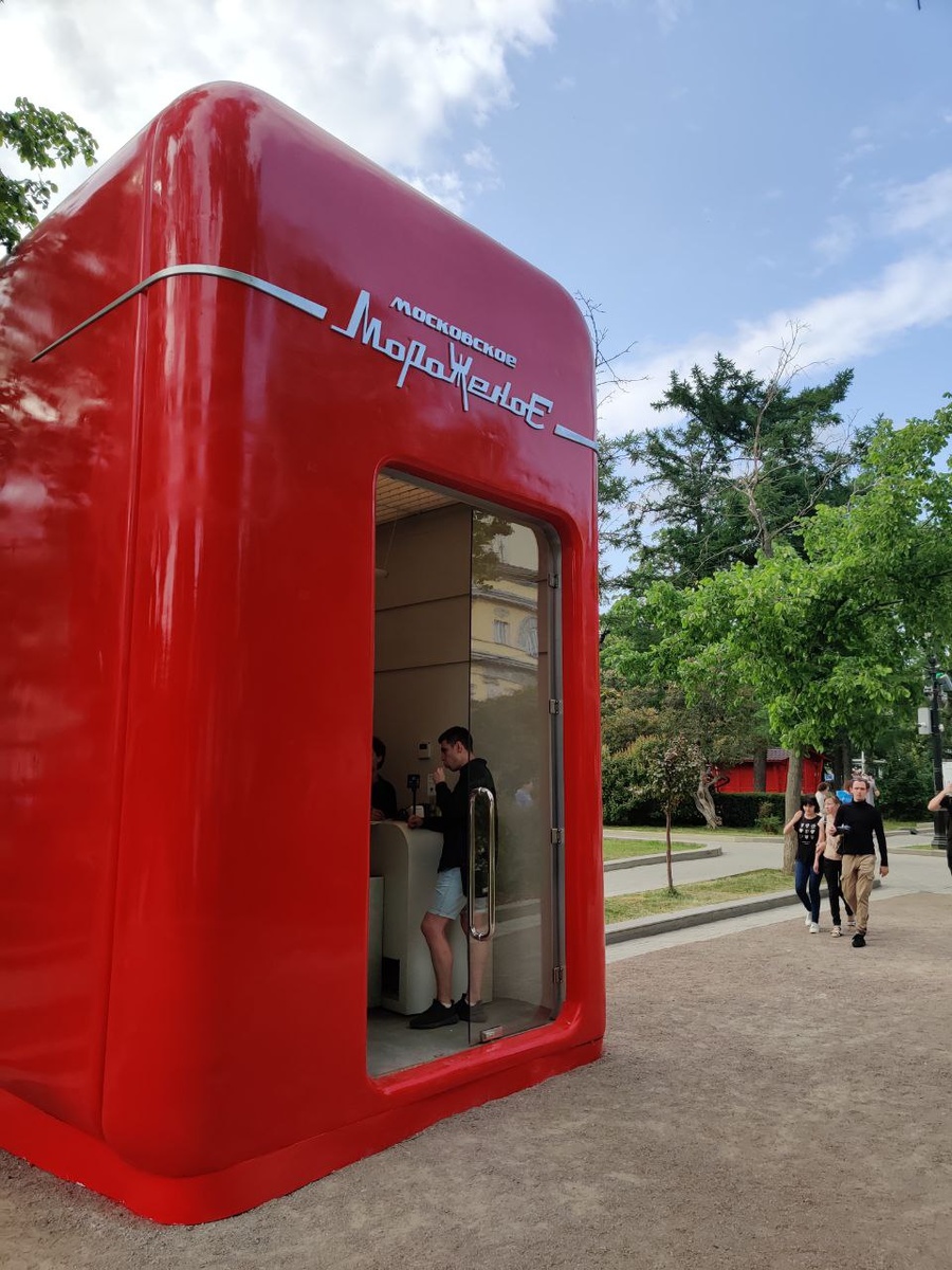 Когда очень хочется мороженого, можно и в холодильник за ним нырнуть. Такой необычный киоск с мороженым установили на лето на Тверском бульваре.