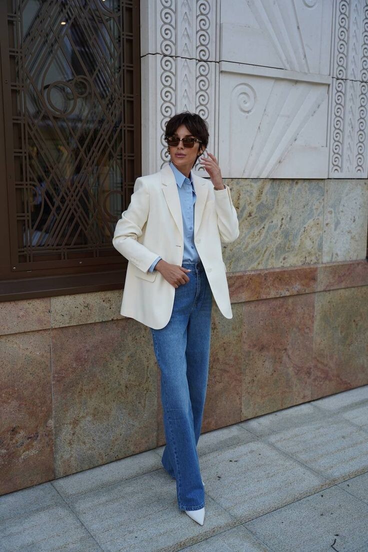 Мы сделали ей образ из простых брюк, свободной хлопковой рубашки, мюли и тонкой золотой цепочки. Без каблуков. Без строгой укладки.