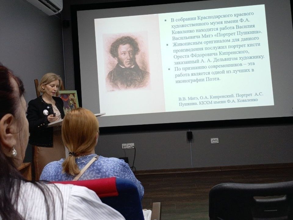 6 июня 2025 года – Пушкинский день. 226 лет со дня рождения Александра Сергеевича Пушкина. В Краснодарском художественном музее им. Ф. А. Коваленко состоялось уникальное событие, посвященное этому дню. Софья Анатольевна Мачигина — член Союза художников России, научный сотрудник Краснодарского краевого художественного музея им. Ф. А. Коваленко, познакомила всех присутствующих с неизвестными страницами творчества выдающихся художников России, с работами мастеров именно того периода, когда жил и творил Великий Поэт. Лекция сопровождалась мультимедийной презентацией «Художники Пушкинской эпохи». Работник Яблоновской детской библиотеки А.Б. Калакуток вместе с читателями нашей библиотеки посетили эту уникальную лекцию, которая обогатила наши знания о Пушкинской эпохе и позволила испытать гордость за нашу великую культуру и искусство. Ребята прочитали отрывки из произведений А. С. Пушкина