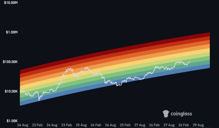 🌈 BTC is slowly creeping into the green zone on the Rainbow Chart!