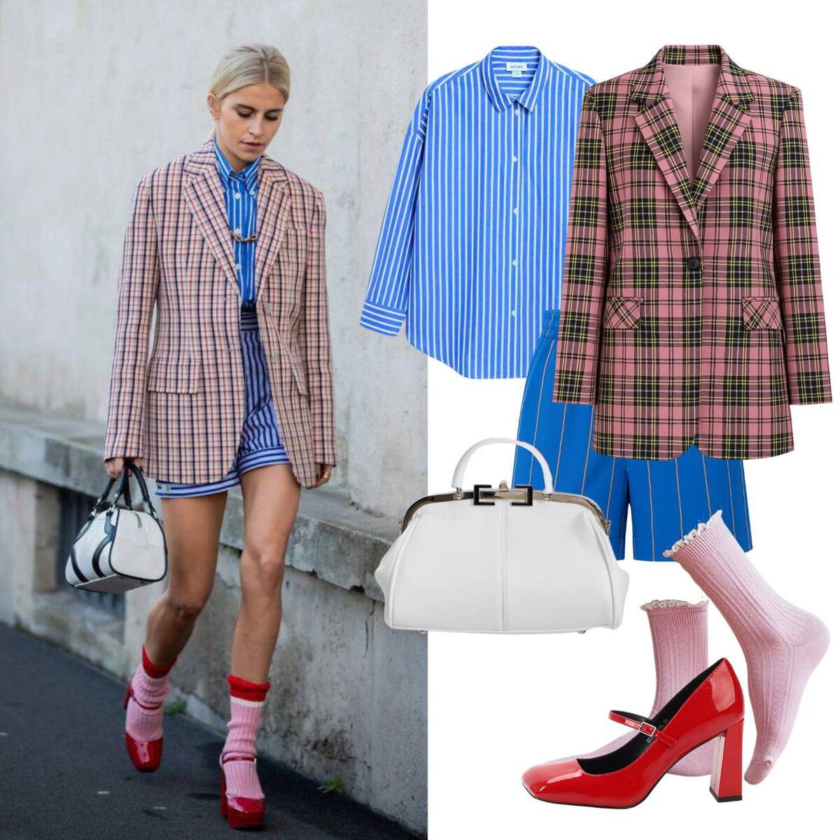 Сегодня хочу показать вам классный образ, который нашла на Пинтерест. Это вообще одно из самых часто используемых приложений на моем телефоне — постоянно нахожу там что-то интересное и вдохновляюсь красотой Этот образ с показа Prada 2020 до сих пор остается актуальным. И служит наглядной иллюстрацией того, что клетка прекрасно сочетается с полоской — хотя многие уверены, что это невозможно Чем еще хорош этот образ — его очень просто повторить. Клетчатый пиджак, рубашка и полосатые шорты — все это можно найти на маркетплейсах без особых усилий Но вот вопрос: как же вписать эти вещи в свой гардероб? Не хотите же вы оказаться в ситуации, когда купили шикарную вещь, а потом она пылится в шкафу, как укор вашей импульсивности? Копируя чужое, важно помнить: референс — это прекрасно, но нужно учитывать свой стиль и гардероб. Так вы сможете создать с новой вещью много гармоничных образов и избежите ощущения, что деньги были выброшены на ветер. А вы используете Пинтерест для референсов,