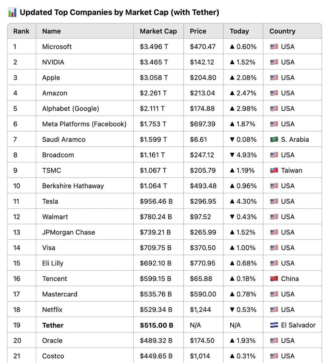 🐳 Паоло Ардоино отметил, что если бы Tether стала публичной компанией, ее оценка могла бы составить $515 млрд — и это еще консервативная