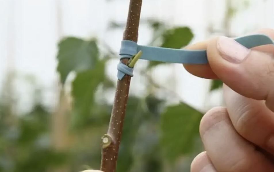 5️⃣ Обмотайте изолентой или специальной лентой (почка должна остаться открытой). Через 2 недели проверьте: если почка зеленая – прививка удалась.
