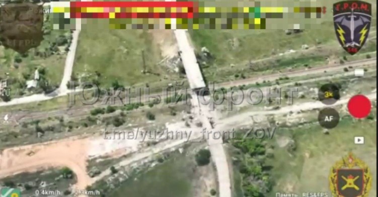 Разведчики «Южной» группировки нанесли точный удар FPV-дроном по заминированному мосту в районе Северска.