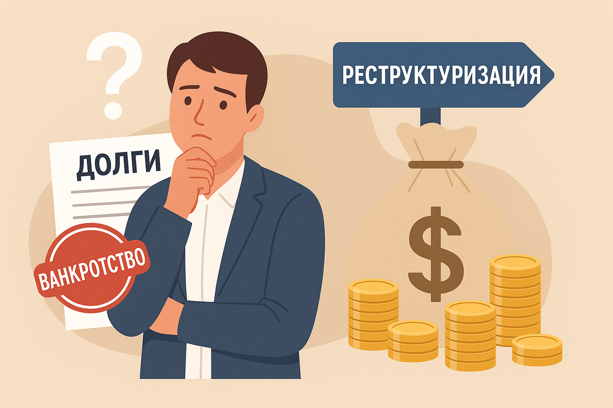 Когда долгов становится слишком много, перед человеком или бизнесом встаёт вопрос: что выбрать — реструктуризацию или банкротство? На первый взгляд, реструктуризация кажется более мягким вариантом — нет реализации (распродажи) имущество, конкурсный/финансовый управляющий не захватывает власть над компанией или финансовой частью жизни человека.
