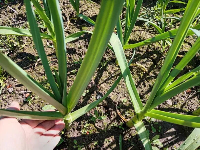 Привет, друзья. В июне требуют ухода все овощные культуры, но не забываем смотреть за ростом чеснока. Ведь чеснок мы убираем с грядок уже в конце июля или начале августа в зависимости от региона. Расскажу подробнее, чем полить чеснок от пожелтения пера в июне. Чеснок, как и другие овощные культуры поглощает много питательных веществ из почвы. Именно по листьям можно судить о нехватке элементов питания. Перо начинает желтеть. Основные причины пожелтения листьев, это явление называется хлороз, заключается в недостатке азота, калия и серы. Это основные вещества, дефицит которых приводит к хлорозу. Но также микроэлементы влияют на сбалансированное развитие чеснока. В зависимости от того, какое вещество не хватает растению в почве, листья соответствующе желтеют. Например, листья у чеснока становятся бледно-зеленые или желто-зеленые. Это говорит о нехватки азота и магния. Если же у чеснока желтеют центральные прожилки у листа, то растению не хватает калия и серы. Поэтому вносить нужно соот
