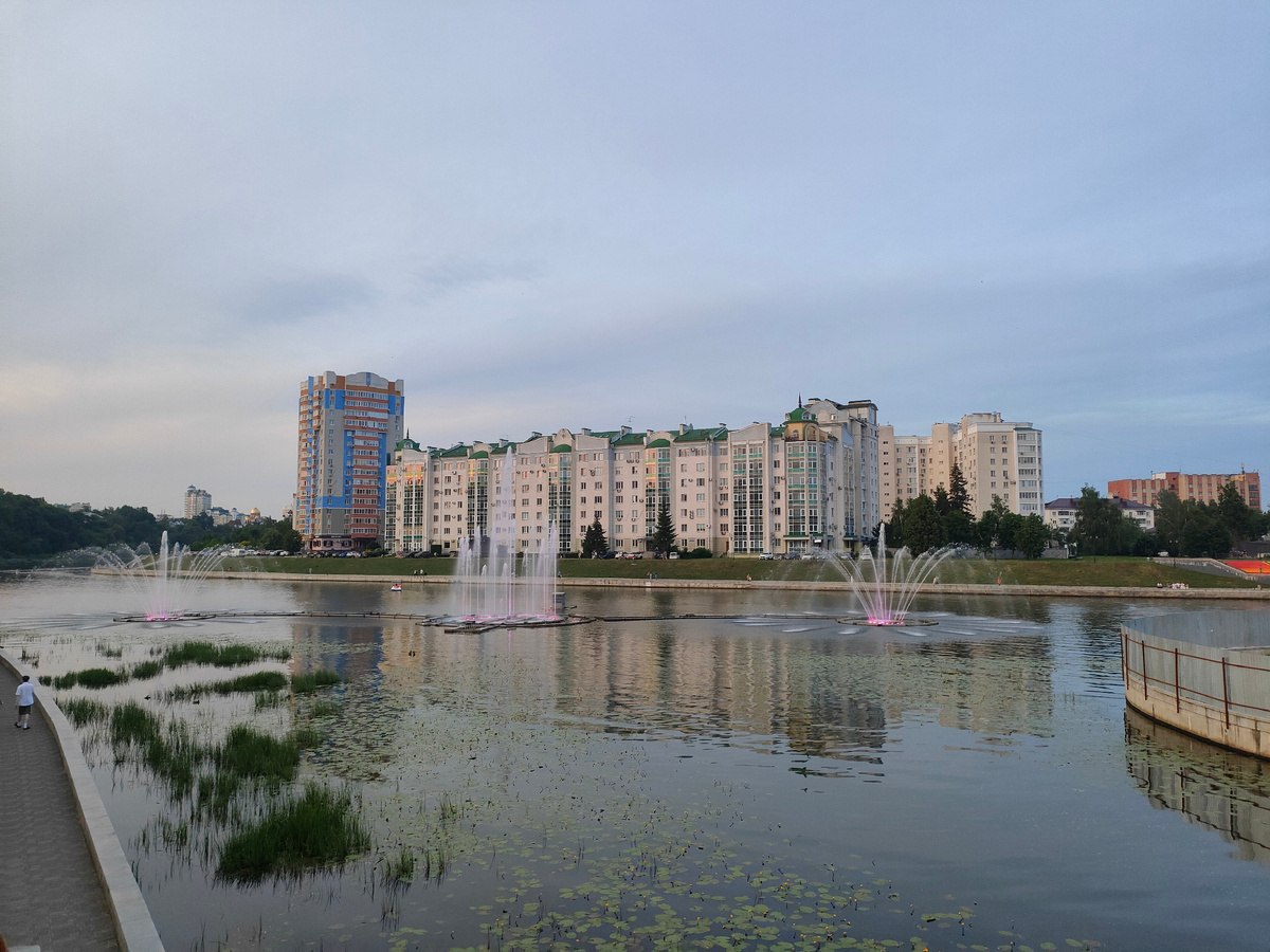 Ну да, перегрелись мы сегодня знатно...На вопрос "сколько лет" ВВ даже ляпнул 58, прибавив себе эдак лет 10. Поэтому охлаждались "под кондеем". Гулять вышли, когда уже спала жара. Просто мне хотелось посмотреть фонтан Крылья Орла, и именно когда он "поёт". А "поёт" он в пятницу, выходные и праздничные дни с 21:00 до 22:00. Фонтан увидели. Скажу своё уже обычное "видали и круче", но зашло. Можно поразвлечься. Видео следом.