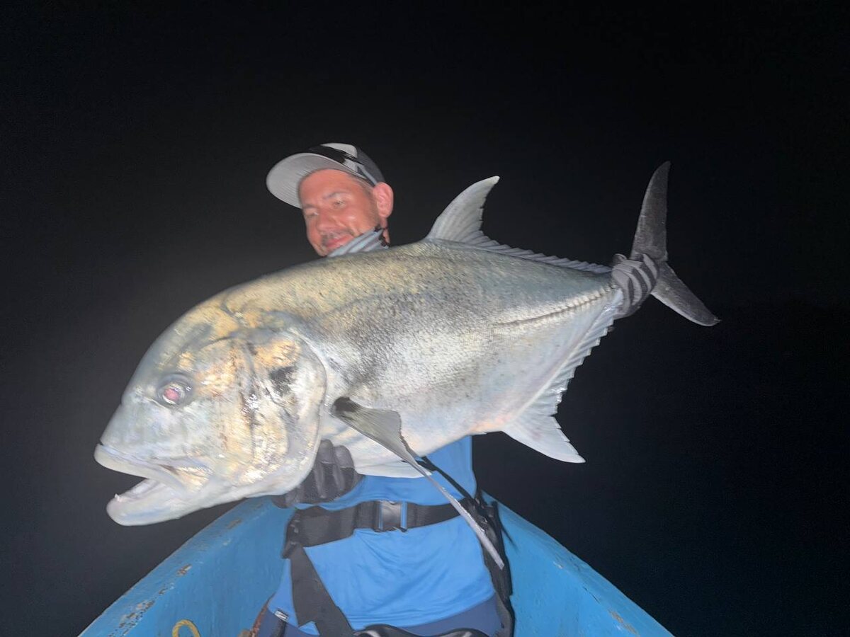 А вот это рыбалка в полнолуние…🌕 Если с рыбалкой с берега ночью еще понятно, то вот это был еще более экстремальный вариант ловли 😈 Теперь я с уверенностью могу сказать, что есть некоторое понимание поведения рыбы в полную луну и около ближайшие дни. GT, да и весь хищник, активно питается исключительно с заходом солнца. Если дождаться самого пика, то можно попасть на невероятную рыбалку… Вокруг оглушающая тишина, в лодке общение только шепотом, никаких фонарей, только свет луны. Поппер летит в никуда, на уровне интуиции делаешь проводку, улавливая слухом его всплески. Ты замер и ждешь…делаешь проводку медленно медленно…рыбе нужно больше времени, чтобы прицелиться ночью. И тут раздается взрыв💥 GT вылетает и словно питбуль пытается разорвать приманку в клочья! А ты, оцепенев, видишь только белые всплески невероятной мощности и также интуитивно подсекаешь… далее начинается борьба, рыба несется с огромной скоростью в самую мощную струю, в которую тебе никак нельзя попасть на лодке, иб