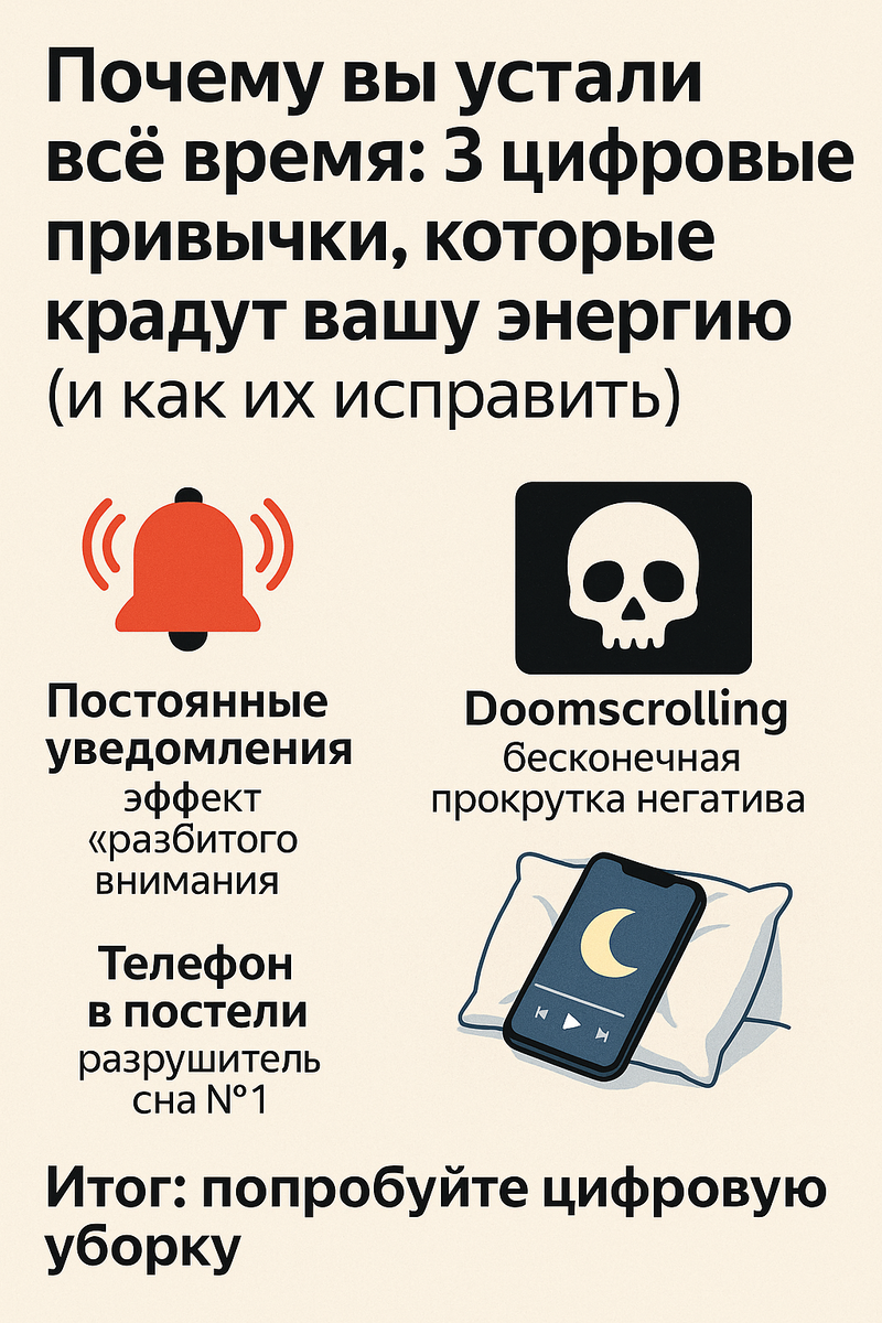 🔋 Почему вы устали всё время: 3 цифровые привычки, которые крадут вашу энергию (и как их исправить)