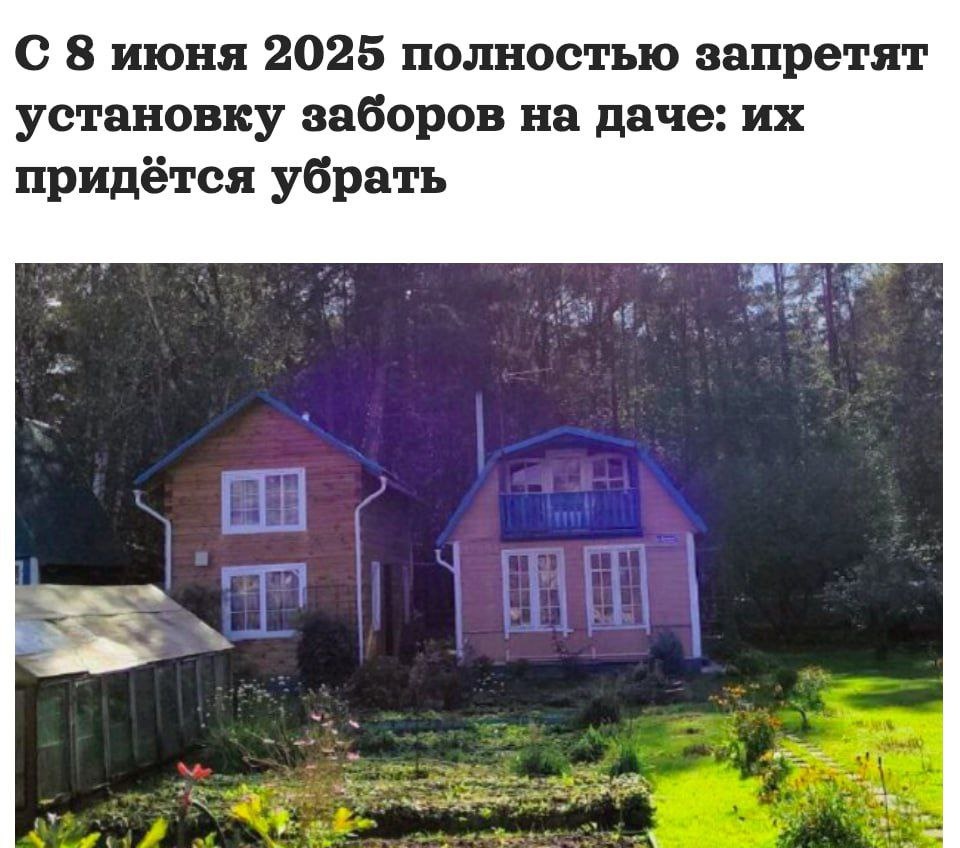 Дачников заставят сносить глухие заборы: новые правила и штрафы за нарушение В России вступили в силу новые нормы для заборов на дачных участках — теперь нельзя ставить глухие ограждения без согласования. Разбираемся, что изменилось и как избежать штрафов. Какие заборы теперь запрещены? Глухие (непрозрачные) — из профнастила, бетона, кирпича. Выше 1,8 метра — даже если это сетка или штакетник. #✅ Какие ограждения разрешены? ✔ Прозрачные (сетка, решетка, штакетник) — чтобы не затенять соседний участок. ✔ Живые изгороди — но их нужно регулярно подстригать. ✔ Комбинированные (низ — глухой, верх — прозрачный) — если высота не превышает норму. Чем грозит нарушение? 🔹 Штраф— от 3 до 5 тыс. рублей (для физлиц). 🔹 Предписание демонтировать забор — за свой счёт. 🔹 Судебные тяжбы — если соседи подадут жалобу. Как узаконить уже стоящий глухой забор? 1️⃣ Получить письменное согласие всех соседей (лучше заверить у нотариуса). 2️⃣ Оформить его в кадастре — через МФЦ и