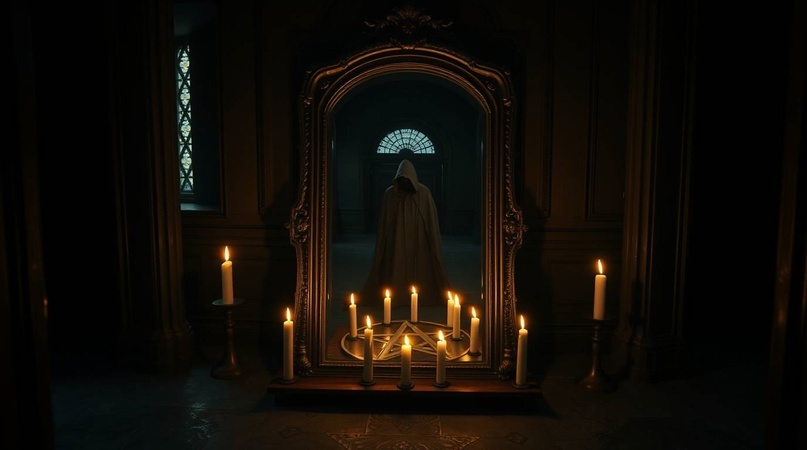 Я видел это лишь мельком. Жюстин повернулась ко мне, и ее отражение снова стало таким, каким и должно было быть. Но эта ее более молодая версия - настоящая версия – имела на лице то же ужасное выражение. Она стояла среди круга свечей, зажженных на полу.