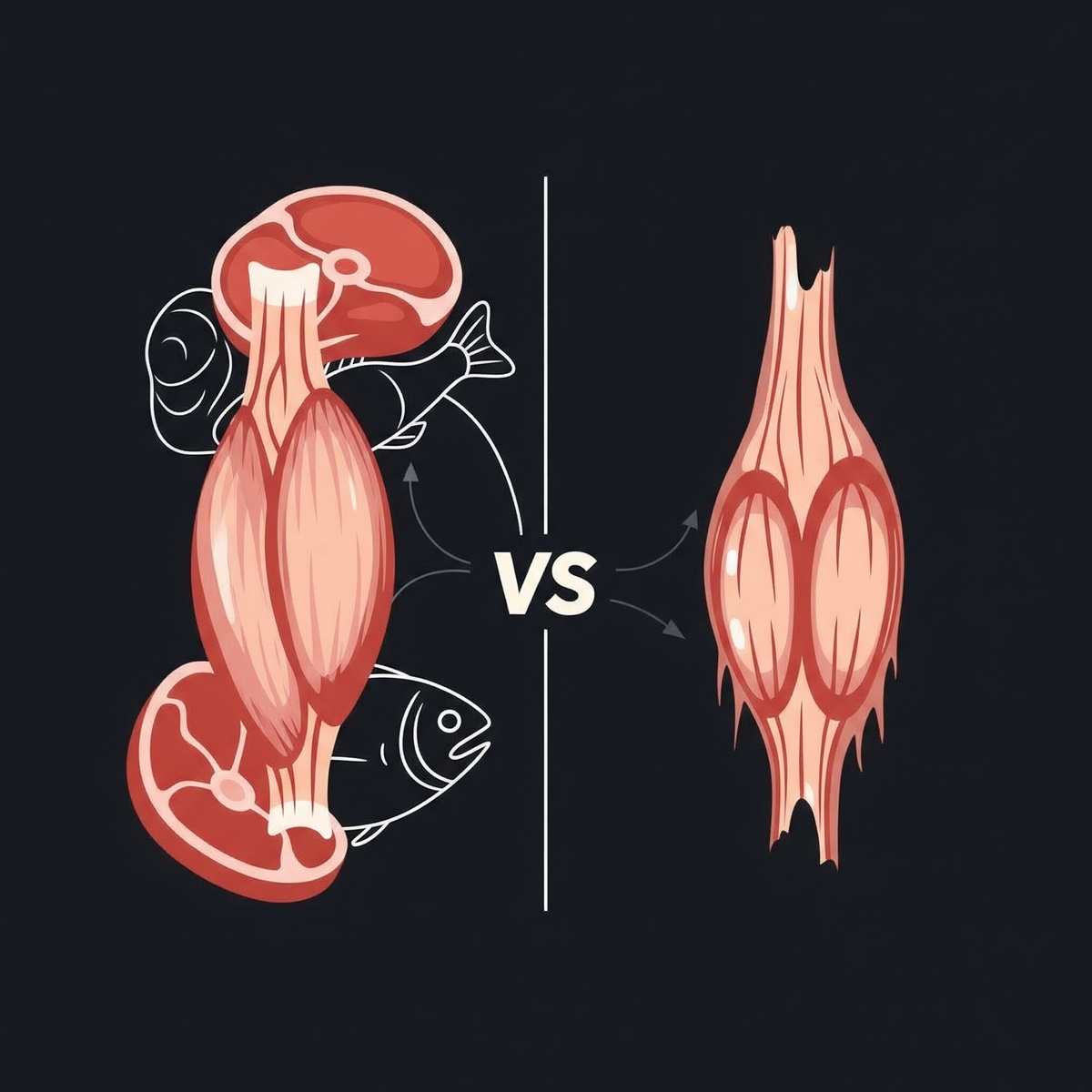 Таким образом, саркопения – это не просто "похудение"; это серьёзное метаболическое и функциональное расстройство, которое подрывает здоровье на всех уровнях. И именно полноценный белок и креатин, преимущественно получаемые из животных продуктов, играют здесь ключевую роль в профилактике и борьбе с этой скрытой угрозой.