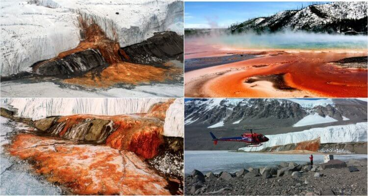 На первый взгляд может показаться, что это кровь или какая-то таинственная жидкость. Однако учёные объясняют этот феномен окислением железа. Подо льдом находится солёное озеро, богатое минералами, включая сульфат железа. Когда вода поднимается на поверхность, железо вступает в реакцию с кислородом, окрашивая воду в красный цвет.