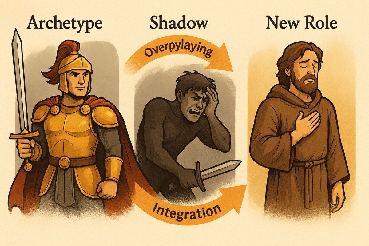 Архетипы Юнга и их тени: как роли превращаются в ловушки - Ключ к пониманию себя, других и всего, что происходит вокруг Сегодня я хочу рассказать вам про одну из самых глубоких систем, помогающих понять поведение людей, лидеров, наций и даже исторических эпох — юнгианские архетипы. Карл Густав Юнг обнаружил, что в нас живут универсальные роли — архетипы: Герой, Мать, Пророк, Маг, Жертва, всего их 12. Это не просто образы. Это настроенные паттерны поведения, словно каналы, по которым течёт наша энергия. Самое важное, что нужно знать: Когда архетип доходит до своего пика — в нём начинает рождаться тень. Это как передозировка роли. Ты уже не играешь её — ты ею становишься. А значит, теряешь гибкость и… превращаешь силу в разрушение. Что такое переходы? Любой архетип имеет: Светлую фазу — когда он помогает жить Теневую фазу — когда он захватывает личность Переход — путь выхода к следующей роли, которая возвращает баланс Давайте на примере: 🗡️ Герой В силе: действует, спасае