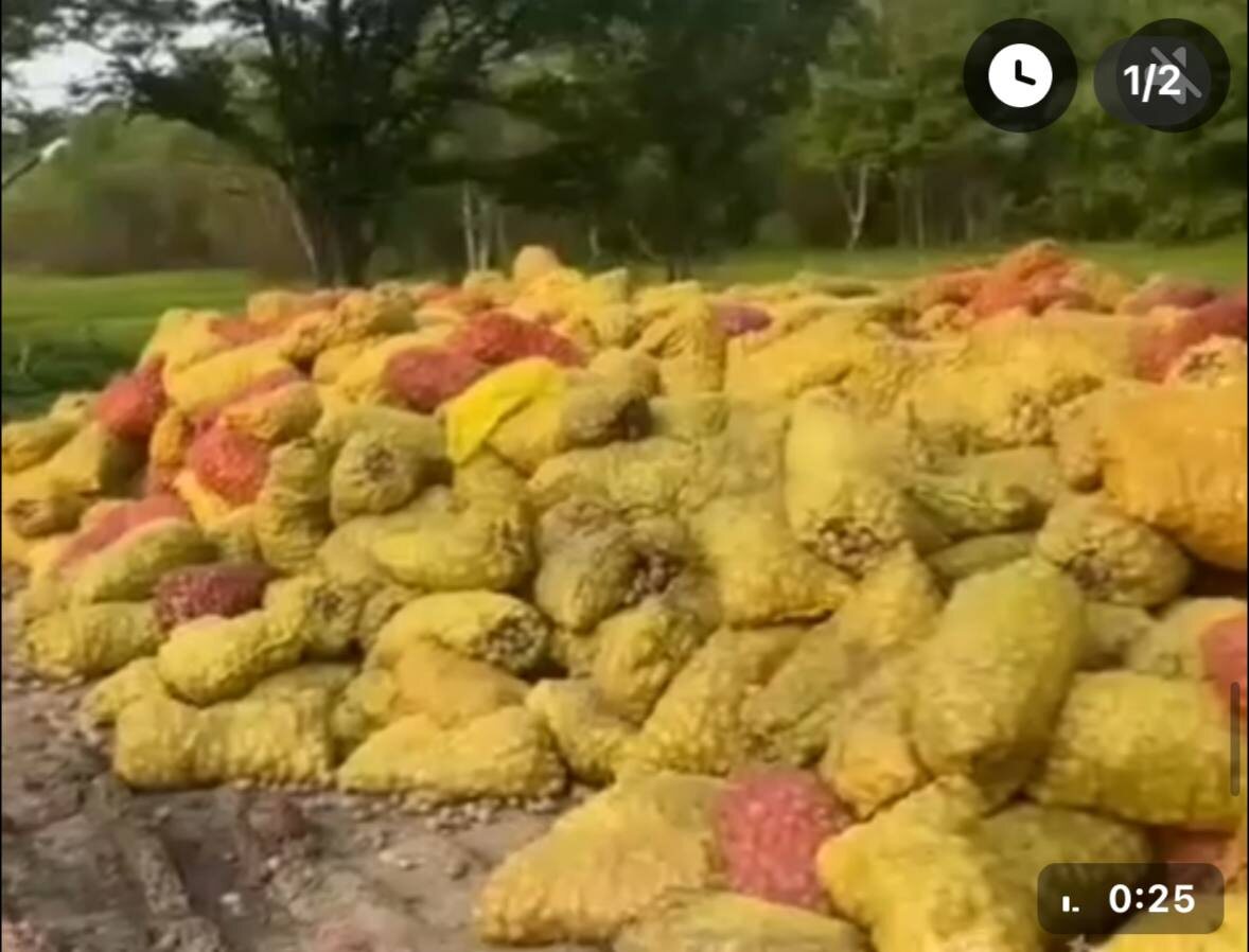 В Приморском крае неизвестные выбросили тонны картофеля на улицу. Десятки мешков с картошкой свалены в кучу между селом Суражевка и посёлком Заводской Артемовского округа.