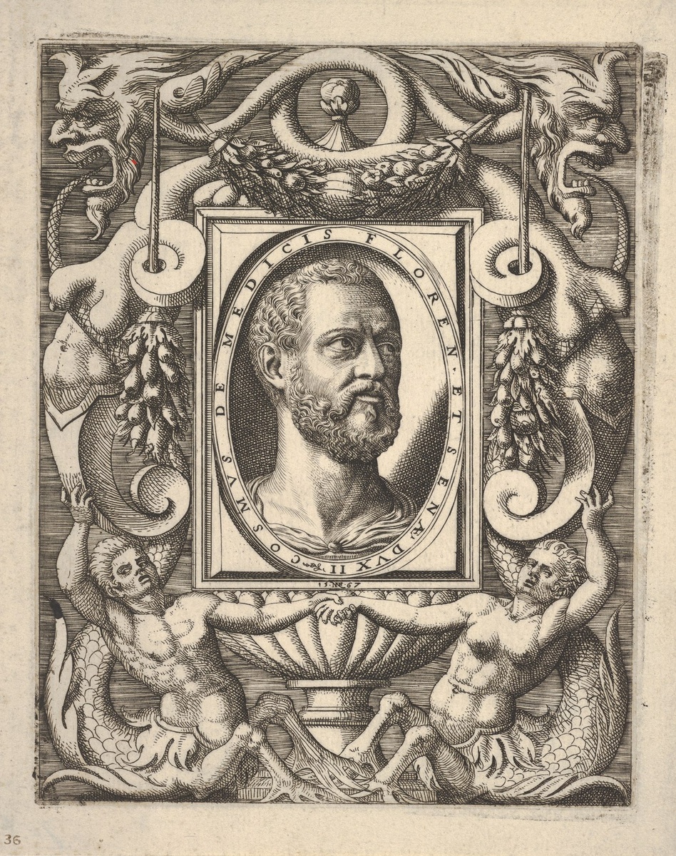 В мире высоких идеалов и могущества, этот бюст-портрет Козимо I, созданный Николо Нелли в 1567 году, будто шепчет о величии флорентийской династии. Окружённый причудливым орнаментом, он не просто изображение, а символ политических амбиций и культурного расцвета эпохи Ренессанса. Каждый штрих, каждая линия передают нечто большее — это взгляд, полон решимости и таинственной уверенности.