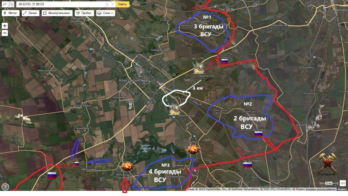 В ответ на пост Район Дзержинска (Торецка) У группировки ВСУ №3 положение продолжает ухудшаться. Российские разведгруппы уже заходят в Александрово-Калиново, идет уничтожение огневых точек и минирование путей подвоза. От Плещеевки у ВСУ так же сложности с логистикой. Генштабу ВСУ пора принимать какие то решения, или выводить бригады из зоны №3, или деблокировать. Под Ступочками ВС РФ продолжают уничтожать укрепления в Предтечино и по трассе на Константиновку. Так же пошло размягчение обороны в Иванополье. Контратаковать противник прекратил. схемы и карты