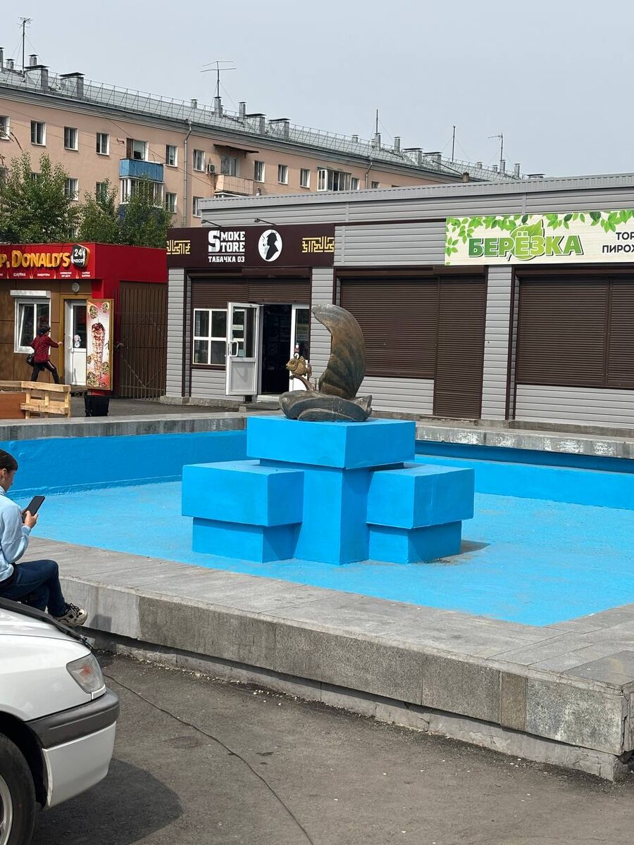 Видимо, фонтана на Юбилейном не будет. Его максимум покрасили в голубой цвет 🤔