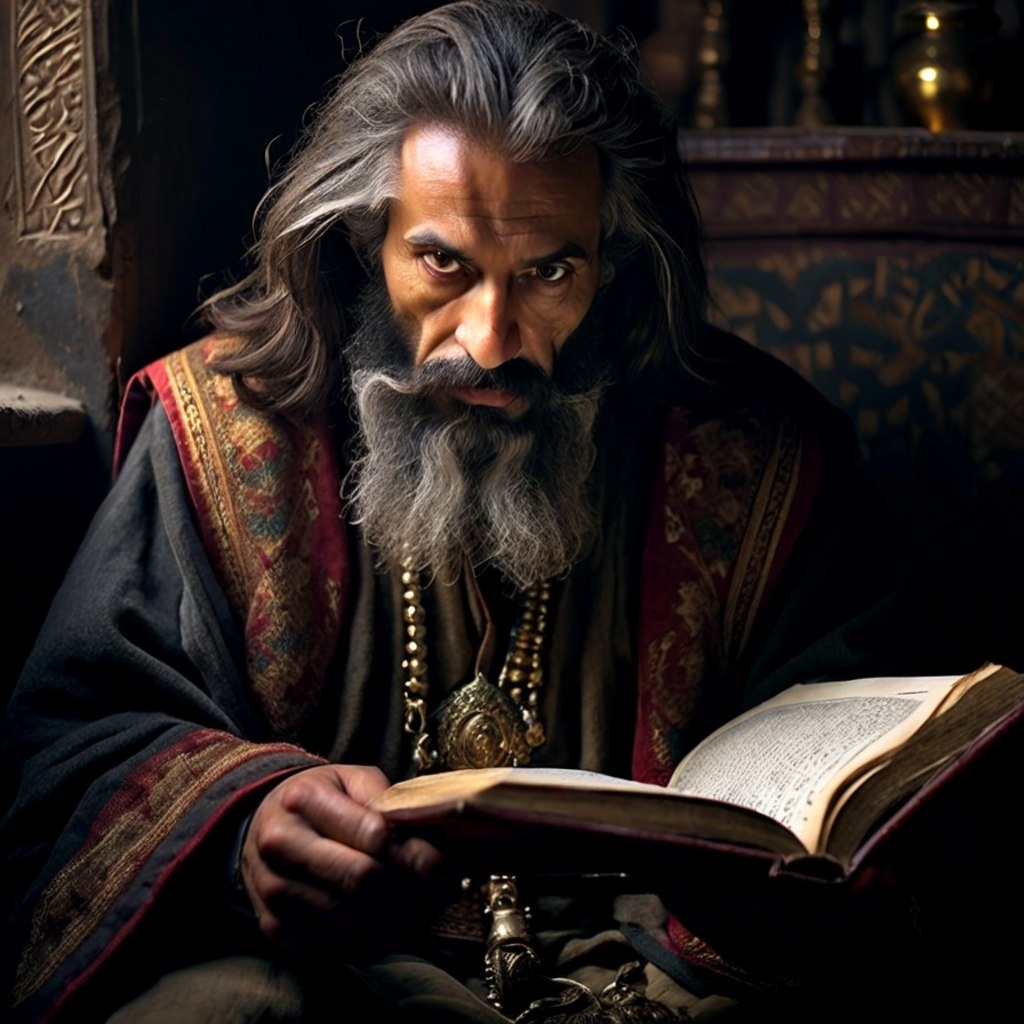 Али аль-Кушчи пододвинул книгу магии-гримуар к боярину Михаилу. Тот смотрел на на книгу как на чудо. В его глазах читалось желание быстрее воспользоваться ею. И это желание было всесильным. Али был человеком ученым, а значит здравомыслящим. В отличие от обычных людей он ценил Мысль, а не материальное её воплощение. Под присмотром Шерзода Али сходил в тайную комнату Улугбека в библиотеке. Взял там только гримуар. Шерзода манускрипты не интересовали, а Михаил был поглощен только идеей излечения своего государя Василия. Али аль-Кушчи, наблюдая за Михаилом, едва заметно покачал головой. Боярин, лицо которого обычно излучало хладнокровие и расчетливость, сейчас был похож на загнанного зверя. Его руки, обычно уверенные и твердые, дрожали, когда он осторожно взял тяжелый, переплетенный в кожу гримуар. Золотое тиснение на обложке, изображающее сплетенные змеи, казалось, пульсировало в тусклом свете свечи. Али понимал, что Михаил видит не просто книгу, а ключ к спасению своего государя,