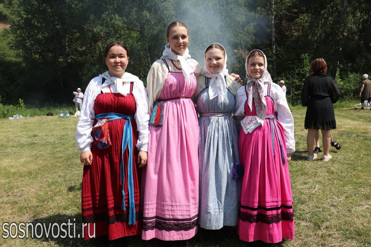 Праздник начался с обряда «завивания березки» на площади у ДК. Затем все участники с песнями спустились к берегу реки, где продолжились торжества. 🎶