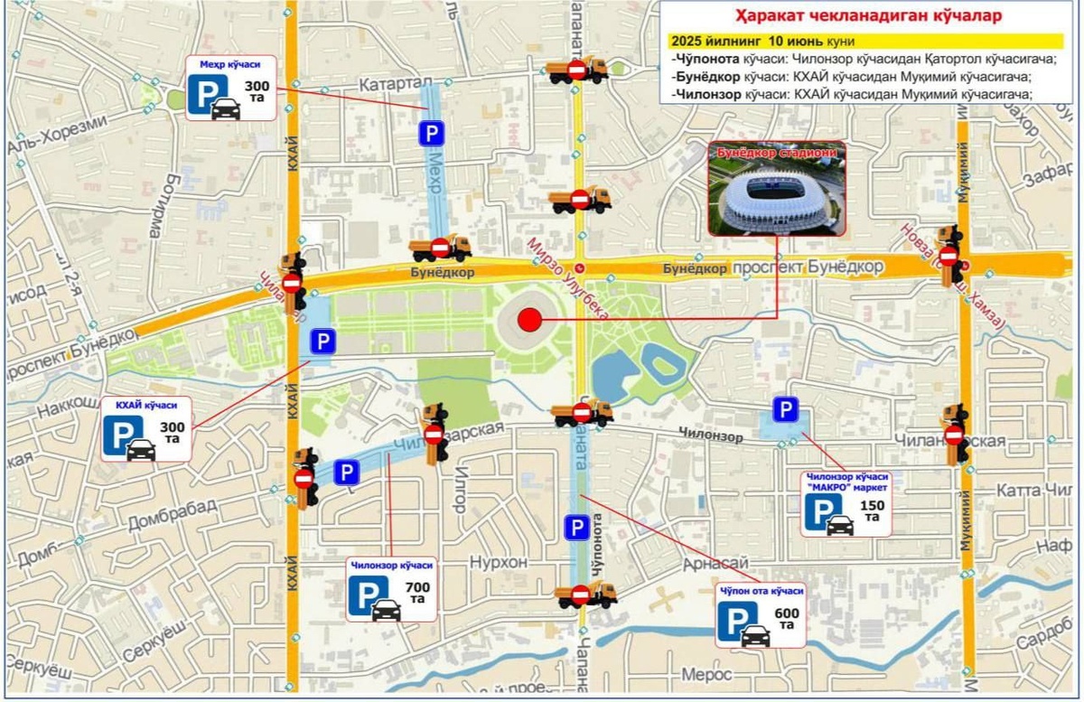 В связи с матчем Узбекистан – Катар на ряде улиц Ташкента будет ограничено движение