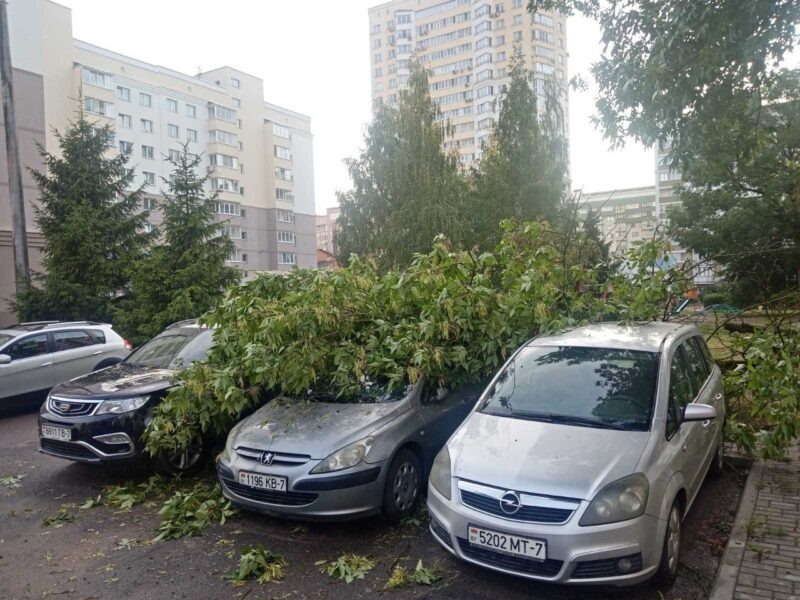 Упавшие из-за непогоды деревья повредили шесть автомобилей в Минске
