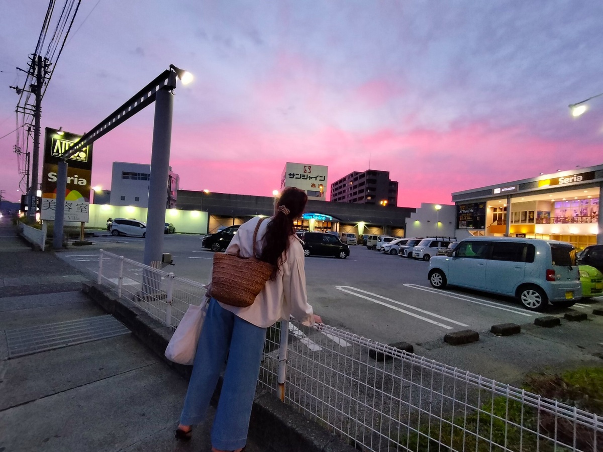 В японской глуши - в деревне Мидоригаока (Кочи) делать особо нечего. Мы с Таро часто выезжаем на прогулку, в кафе или в торговые центры в город Кочи. Недавно увидели там вот такой яркий закат.