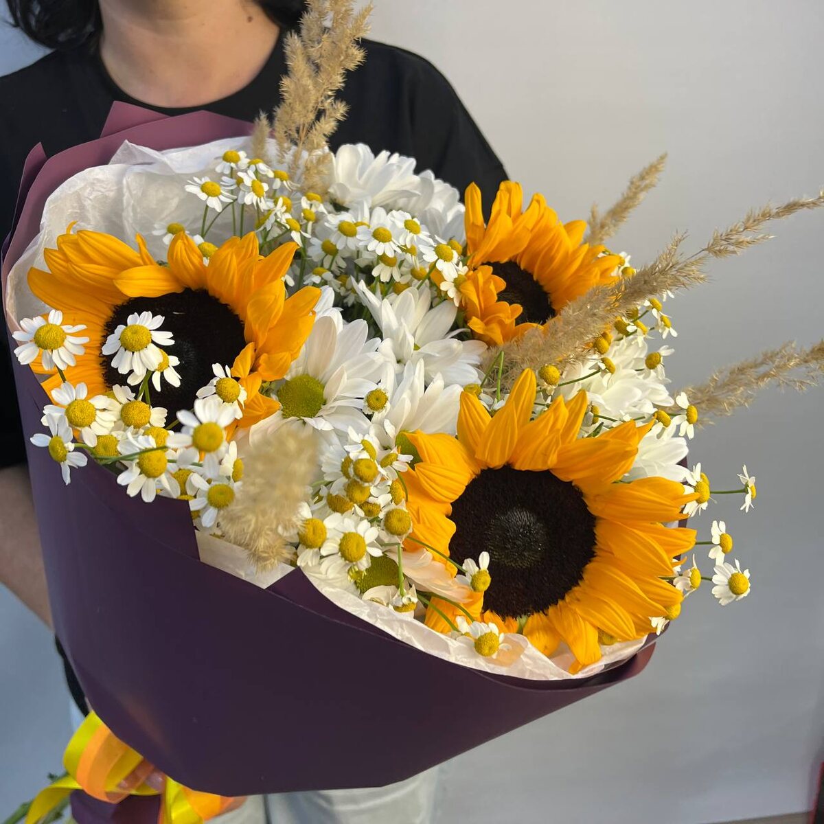Яркий букет "Солнечное настроение" 🌻🌼 Хотите подарить заряд позитива и тепла? Этот букет — идеальный выбор! ✅ Сочные подсолнухи — символ радости и энергии. ✅ Нежные кустовые хризантемы — долго стоят и дарят уют. ✅ Свежие ромашки — лёгкость и романтика в каждом лепестке. ✨ Почему стоит выбрать этот букет? ✔️ Яркий акцент в любом интерьере. ✔️ Поднимает настроение с первого взгляда. ✔️ Универсальный подарок на любой повод. Подарите солнечные эмоции уже сегодня! 💛 *Доставка или самовывоз. Заказывайте сейчас — количество ограничено!* 👉 Напишите нам, чтобы забронировать букет!