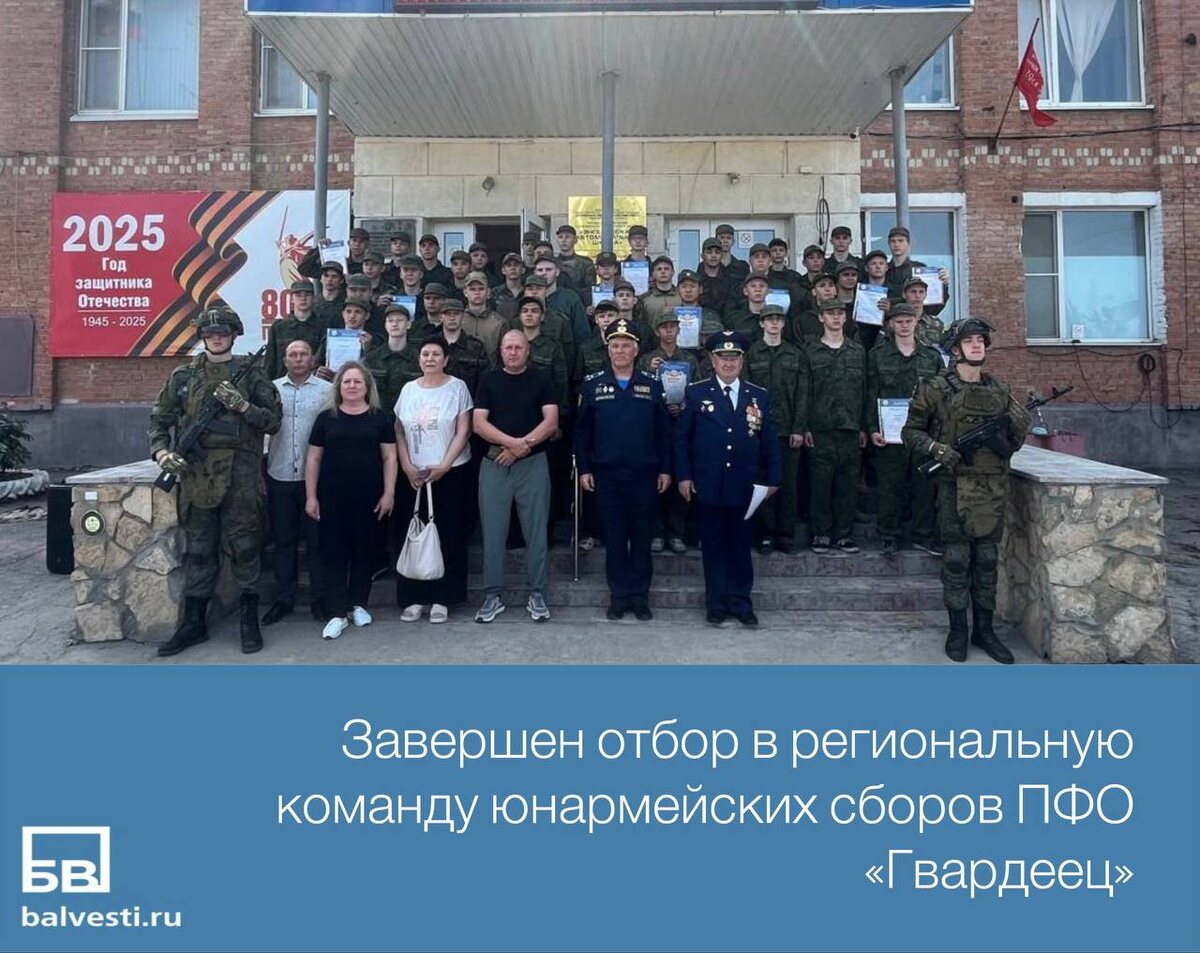 На базе учебно-методического центра военно-патриотического воспитания молодежи «Авангард» г. Энгельса состоялось торжественное закрытие отборочного этапа юнармейских военно-патриотических сборов Приволжского федерального округа «Гвардеец». 58 юных курсантов на пять дней погрузились в атмосферу армейской жизни. Под руководством опытных инструкторов ребята занимались строевой, общефизической и огневой подготовкой, участвовали в спортивных играх и изучали историю России. По итогам отборочного этапа будет сформирована региональная команда из 28 школьников, которые в июле приступят к новому этапу подготовки. В рамках сборов юноши займутся физической, строевой, огневой подготовкой, научатся современной тактике и методам ведения военных действий, улучшат знания по истории России, встретятся с героями Отечества, посоревнуются в спортивных и военно-прикладных дисциплинах, а также продемонстрируют свои творческие способности. В августе команда Саратовской области представит нашу область на сбор