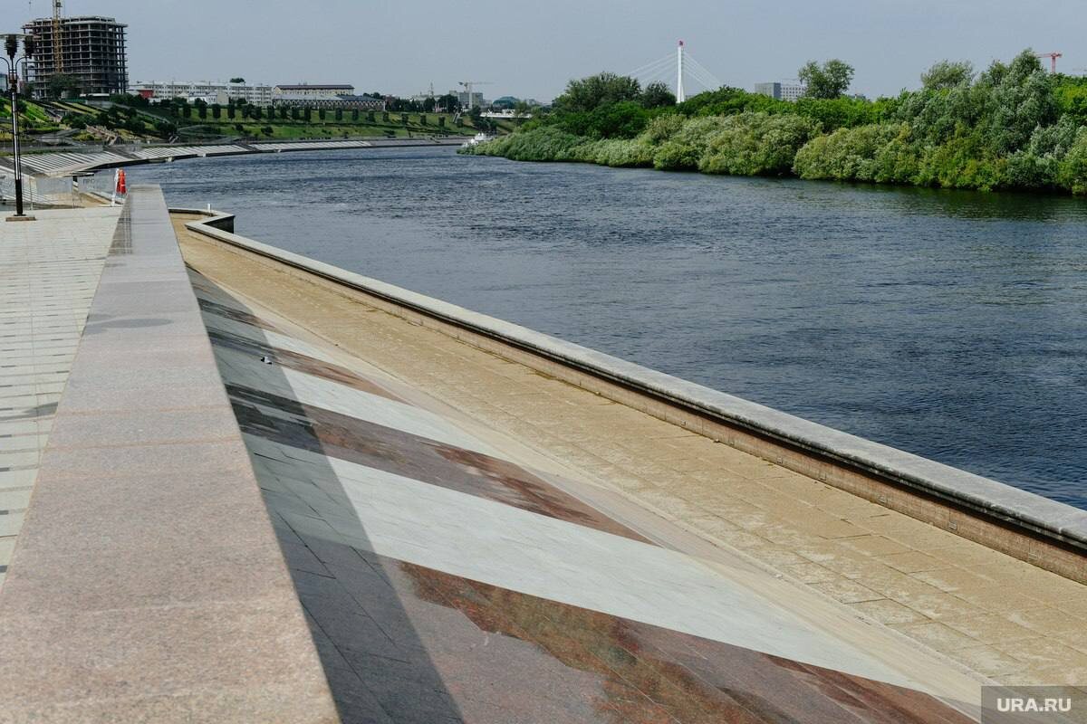 Тура покинула набережную - вода полностью освободила первый ярус. Правда спускаться туда по-прежнему запрещено. На пешеходной зоне остались следы затопления в виде песка, грязи и луж.