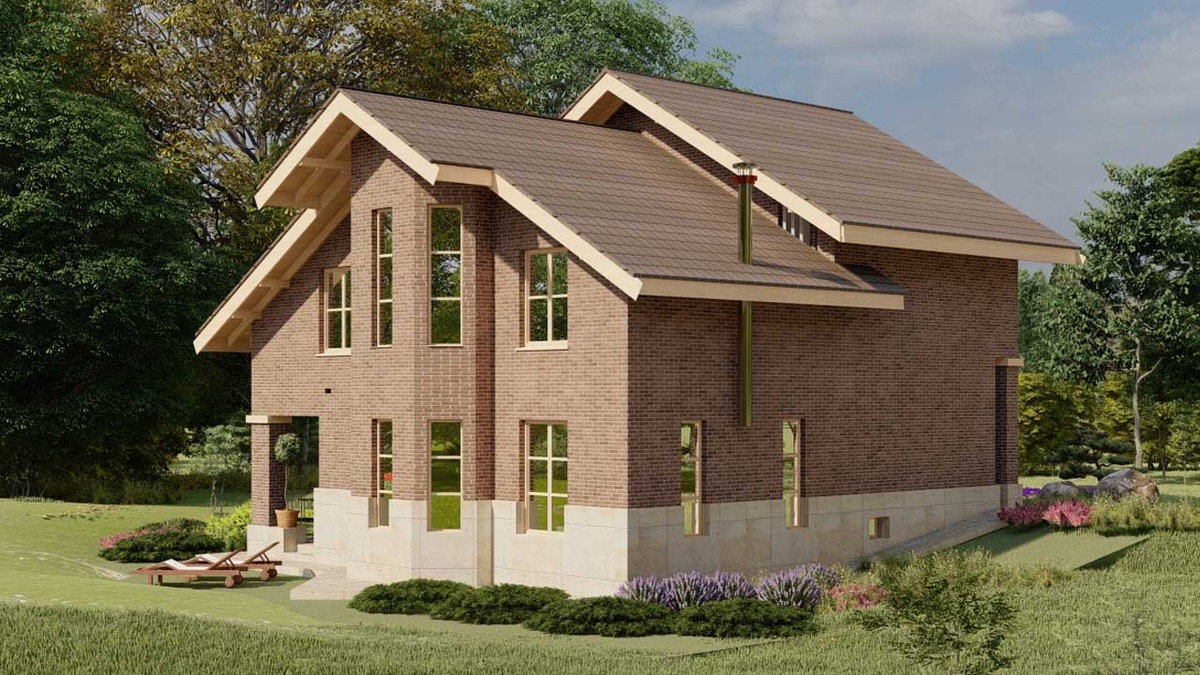 ГОРКИ-2 158 м2 - проект дома со смещением этажей для участка с уклоном от дороги.