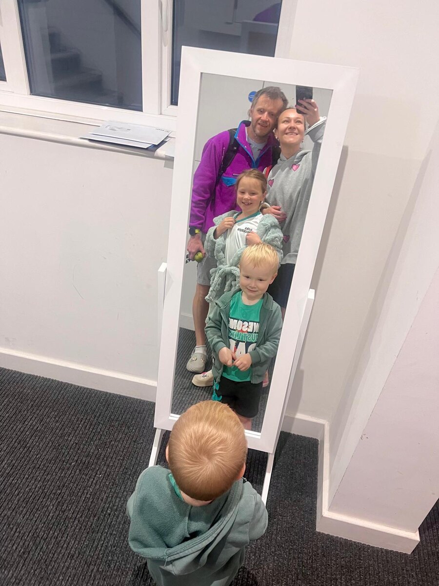 В этот раз после насыщенной субботы (у Эрики целый день были соревнования по плаванию, и вся семья её поддерживала) решили день провести дома. В этот день было тепло, загорали на террасе под пальмой. Чем не курорт;)