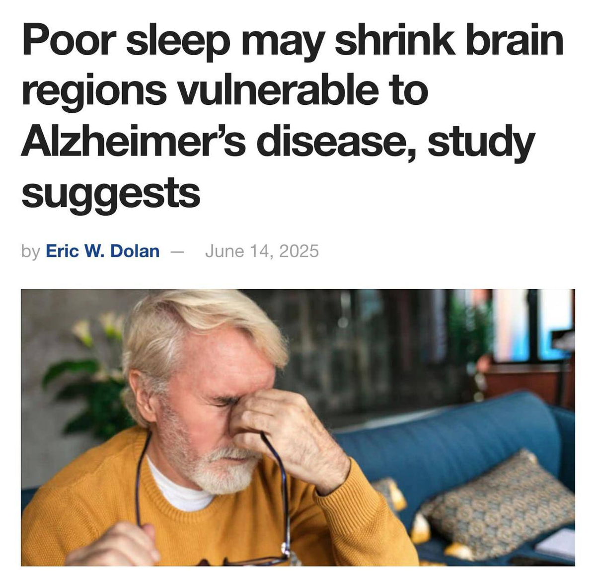 🔎 Факт: Учёные доказали — хронический недосып буквально «сжимает» мозг, особенно зоны, отвечающие за память. Это прямой путь к Альцгеймеру.