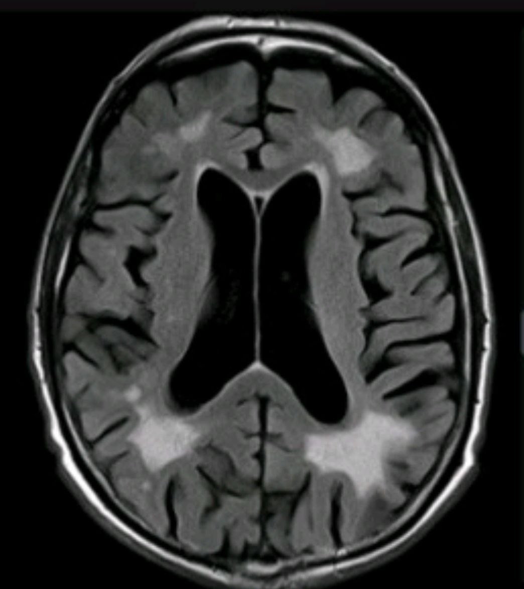 🧠 Хроническая ишемия головного мозга — это состояние, при котором ткань головного мозга не получает достаточного количества кислорода и питательных веществ из-за недостаточного кровоснабжения. Это может произойти в результате различных факторов, основными из которых являются атеросклероз, артериальная гипертензия, диабет. ➡️ В результате в веществе головного мозга происходит постепенное замещение нормальной мозговой ткани клетками глии - появляются очаги и фокусы глиоза. 👀 По МРТ в первую очередь мы оцениваем эти изменения на T2 ВИ и импульсной последовательности FLAIR, на которых очаги глиоза имеют гиперинтенсивный МР-сигнал, по Т1 ВИ данные очаги могут быть изо-гипоинтенсивны. Данные очаги зачастую сливаются в зоны глиоза, на фоне которых мы нередко видим лакунарные кисты - последствия лакунарных инсультов. 🖥 Данные изменения выявляются у пациентов после 60-65 лет - с такими пациентами врач-рентгенолог сталкивается каждую смену. 📎В случае обнаружения подобных изменений рентгенол