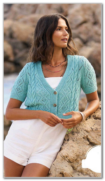 Легкий жакет — идеальное завершение летнего образа: аккуратный, небольшой, с короткими рукавами и милой укороченной длиной. Модель от Rowan отлично подойдет для теплой погоды и добавит стильный штрих вашему гардеробу. Бирюзовый цвет напоминает о лете и отлично смотрится с загаром. Этот милый кардиган будет великолепно смотреться с макси-платьем без бретелек!