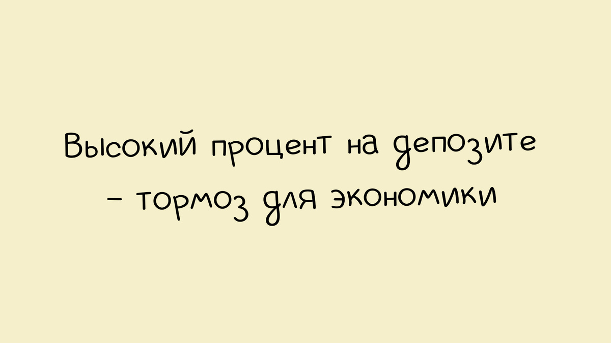 А что происходит при высоких процентах по вкладам? Люди и компании несут деньги в банк и оставляют их там лежать. Зачем рисковать, если можно получить доход просто за счёт того, что деньги лежат? В результате эти средства не работают в экономике: не создают рабочие места, не двигают производство, не стимулируют бизнес.