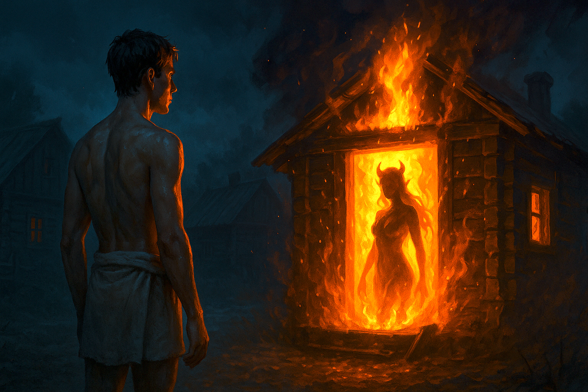 Когда я оказался на улице, в одном полотенце, ночь встретила меня неожиданным холодом. Но баня за моей спиной уже начинала пылать — сперва внутренняя жара, затем рывком вспыхнули стены, будто их облили бензином. Пламя росло жадно, яростно, будто эта старая деревянная клетка сама просила об избавлении.