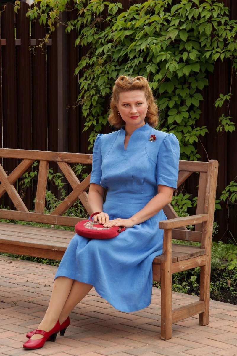 ~Здравствуйте, милые женщины 🌹🌿 Сегодня улучила момент между ярким солнцем и грозой сняла для вас готовый образ в васильковом платье❤️💙🩵 ~Как и говорила, разбавила васильковый цвет красными нотками❤️🎶 Платье дополняют современные туфли, но выполнены они под ретро, сумочка, которую я делала в прошлом году, и английская брошь с миниатюрными розочками🌹🌿 #винтажныйстиль #ретро #образ #платье