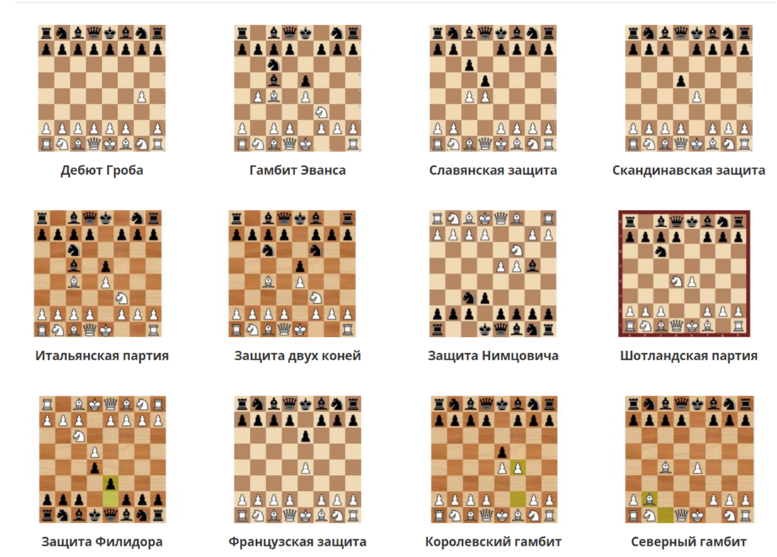 Но среднестатистическому шахматисту для успешного старта не обязательно изучать все существующие варианты начала игры, а достаточно выбрать несколько популярных дебютов за каждый цвет.