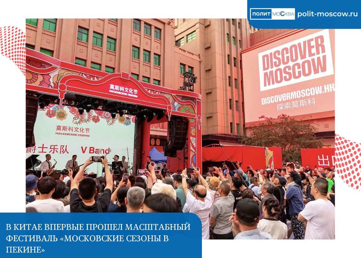 🐎В Китае впервые прошел масштабный фестиваль «Московские сезоны в Пекине» 🏛С 12 по 15 июня в Пекине прошел фестиваль «Московские сезоны», и это было настоящее погружение в атмосферу российской столицы Улица Ванфуцзин превратилась в уголок Москвы, где можно было познакомиться с нашей культурой, историей и гастрономией. 🇷🇺2,85 миллиона человек посетили фестиваль! Концерты, танцы, русская кухня, мастер-классы по изготовлению сувениров – все это пользовалось огромной популярностью. Жители Пекина с удовольствием пробовали баранки и шоколад, покупали сувениры и интересовались достопримечательностями Москвы. В рамках фестиваля также прошла конференция «Города будущего», по итогам которой было заключено семь международных соглашений! ✅Фестиваль стал частью перекрестных Годов культуры России и Китая, приуроченных к 75-летию установления дипломатических отношений между нашими странами. Это подчеркивает важность культурного обмена и укрепления связей между Москвой и Пекином, которые, к сло