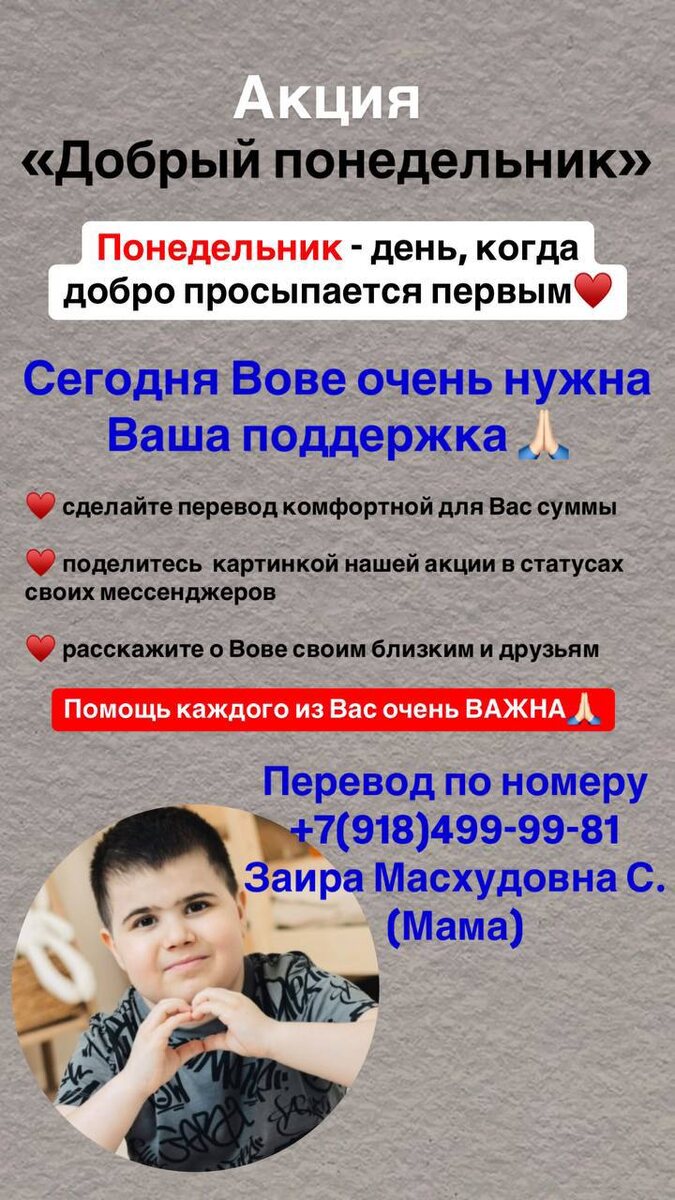Внесите частичку чуда в здоровое детство Вовы🙏🏻
