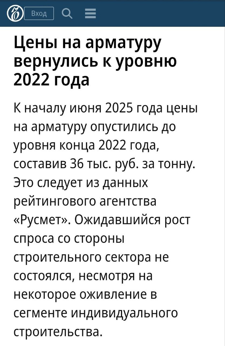 Две новости. Одна на основе статистики. Другая фантазии. Что есть нынешние высотки, или как мы говорим- современные дома? Смесь арматуры, цемента и песка. Остальное мишура. Что мы видим по ценам на арматуру? Там коллапс. Откуда уважаемый эксперт взял цифры роста, не знаю. Может у него тоже "инвест" проект в студии?))) Выше писал, весь спрос на новостройки держится из всех усилий, благодаря работе всех органов власти. Но даже их усилий уже недостаточно для удержания спроса. Поэтому и пошли эти попытки засунуть под условия льготной ипотеки ещё энное количество потенциальных клиентов. Но Минфин будет категорически против. Рекомендую в яндексе набрать данные по дефициту бюджета за первые месяцы этого года. Он рекордный. Там правда Израиль пытается помочь наполнить наш бюджет. Но это временно. Не будет никакого роста цен на рынке квартир от застройщика. Стоп кран. #инвестициивнедвижимость #льготнаяипотека #ипотекапомощь #мысли #Светлов