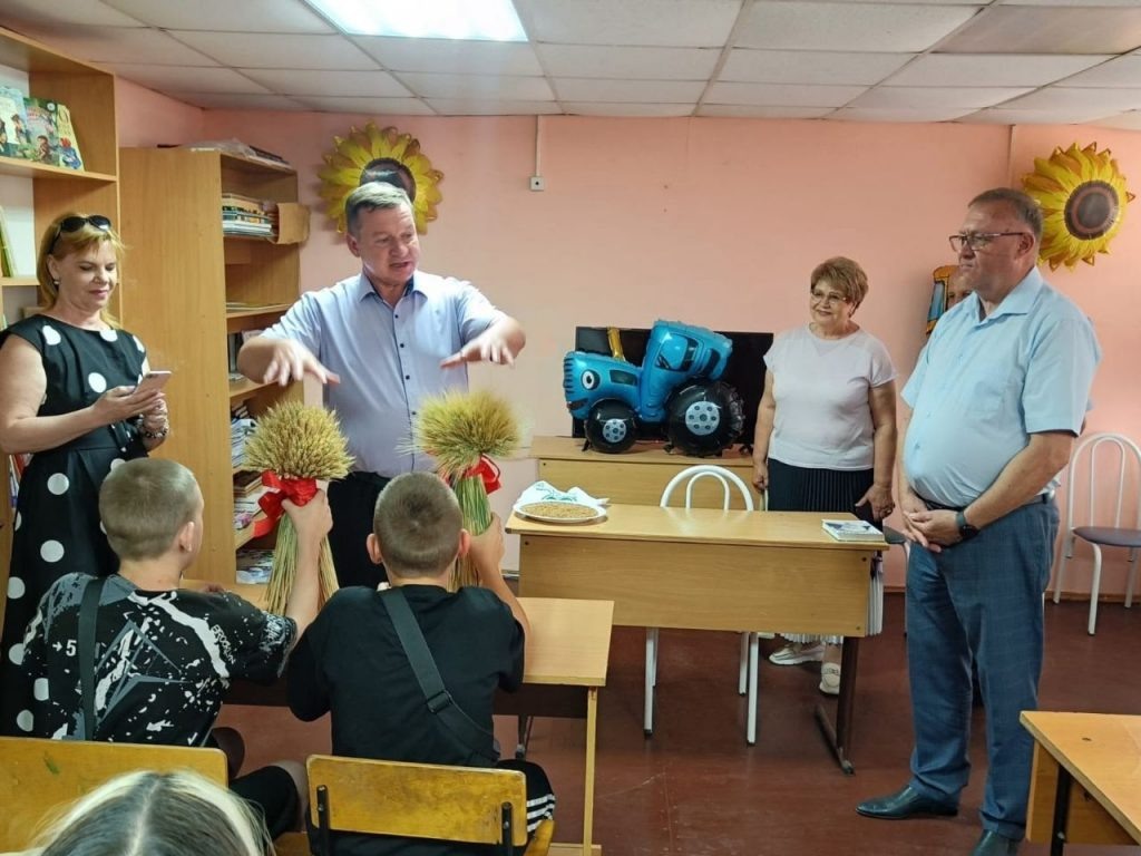 Андрей Иванович привез на эту встречу с детьми образцы самых распространенных в нашей местности зерновых культур — ячменя, озимой пшеницы, овса, ржи. Это были первые снопы нового урожая. Руководитель одного из крупнейших сельхозпредприятий района рассказал ребятам о том, чем колосья и зерна разных культур отличаются друг от друга и как их можно распознать, объяснил, какие из этих культур идут для производства круп, муки, а какие используются для нужд животноводства и других целей. Он также познакомил детей с трудом хлеборобов, рассказал о том, какие специальности в сфере сельского хозяйства будут востребованы в ближайшее время.