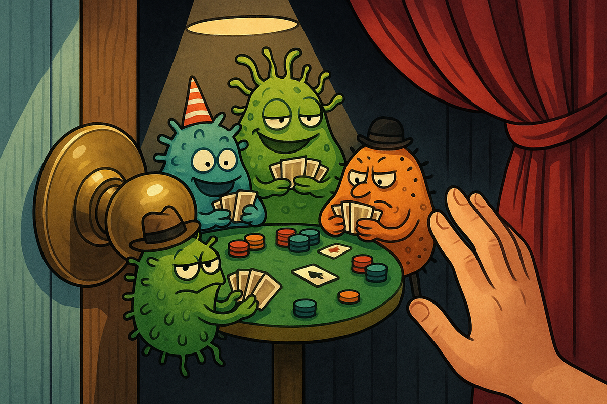 Например, если вас пугает мысль о микробах на дверной ручке, вообразите, что микробы устроили там целый городок со своими домиками, магазинами и мэрией. Представьте, как они обсуждают, стоит ли переселяться на вашу руку, или лучше остаться на привычной ручке.