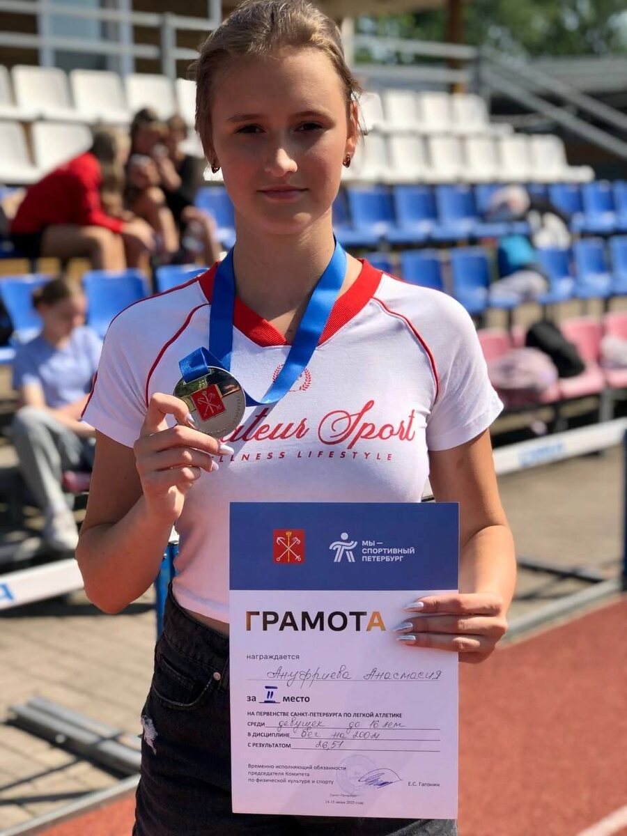 ✨ПЕРВЕНСТВО САНКТ-ПЕТЕРБУРГА🏁 ⚡️Начинаем новую неделю с отличных новостей ⤵️ Наши спортсменки вновь на пьедестале почета! 🔥 Три серебряные медали завоевали девушки в копилку отделения легкой атлетики. 🏁В выходные, 14 и 15 июня, на стадионе «Приморец» прошли городские соревнования - Первенство Санкт-Петербурга по легкой атлетике среди юношей и девушек до 16 лет. 🥈🥈Ануфриева Анастасия стала дважды серебряным призером - в беге на дистанции 400 метров и в беге на 200 метров. 💥 Тренер: Магер Юлия Викторовна. 🥈Пшеничникова Мелета заняла второе место в беге на 1500 метров. 💥 Тренер: Павловская Евгения Николаевна. 👏С гордостью поздравляем наших замечательных спортсменок и тренеров-преподавателей с медалями первенства! 🏅Желаем удачи на стартах, легких ног и дальнейших успехов в летнем сезоне! #легкаяатлетика #МыСпортивныйПетербург #ГБУДОСШОРПушкинскогорайонаСанктПетербурга