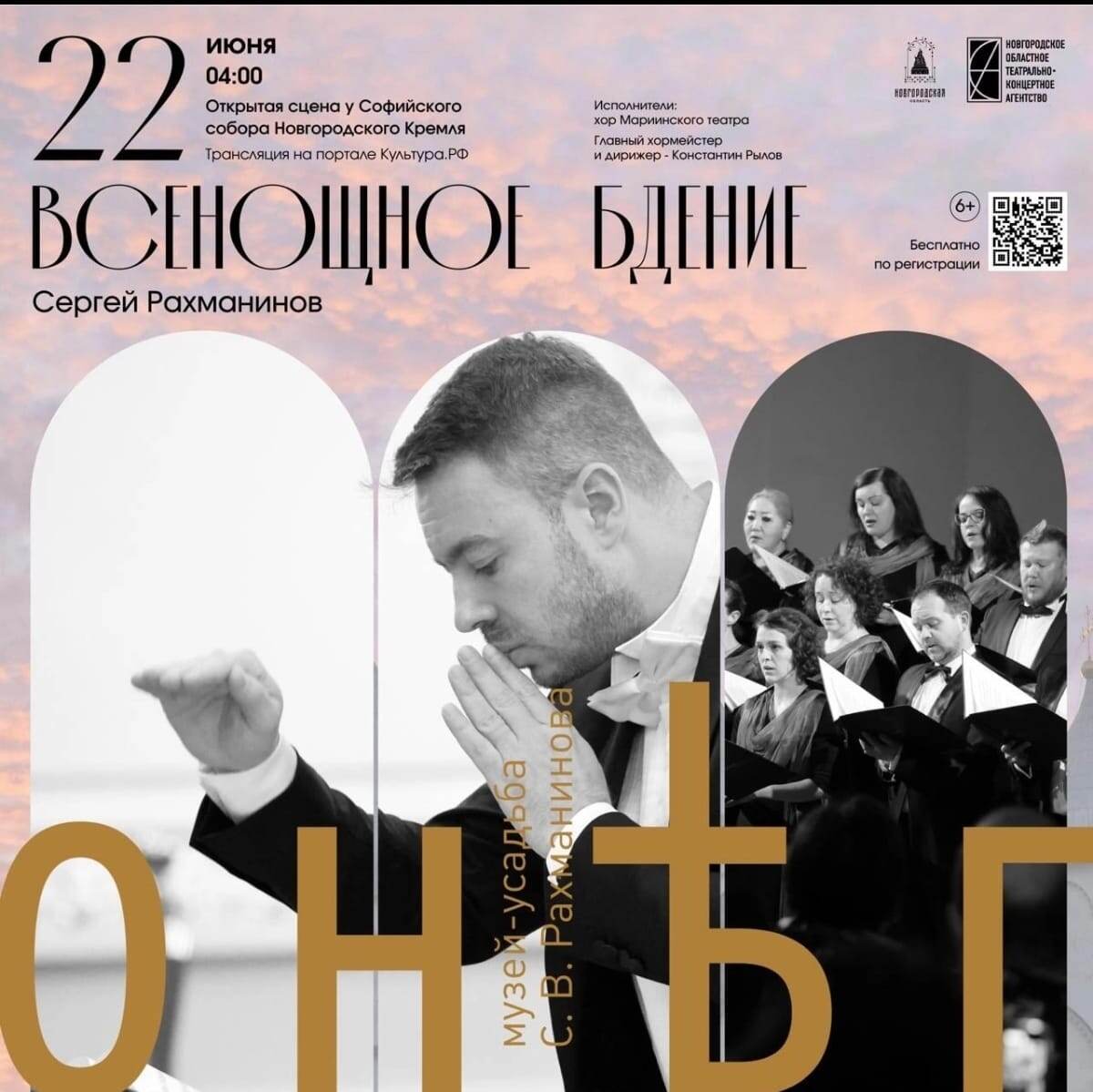 22 июня в 4 утра у стен Софийского собора Новгородского Кремля во второй раз пройдет концерт-реквием. В этом году выступит хор Мариинского театра под управлением Константина Рылова – выдающийся музыкальный коллектив, широко известный в России и за рубежом. На рассвете хор Мариинского театра исполнит величайшее произведение русской духовной музыки – «Всенощное бдение» Сергея Рахманинова. Почтить память павших воинов и жертв Великой Отечественной войны приглашаются жители и гости города, все, кому дорога история нашей страны. Вход свободный, регистрация по ссылке https://oneg.timepad.ru/event/3404325/ Предусмотрены места со свободной рассадкой (количество мест ограничено) у открытой сцены. Концерт организован в рамках культурно-просветительской программы «Музея-усадьбы «ОНЕГ», которая реализуется при поддержке правительства Новгородской области и социального инвестора Андрея Комарова.